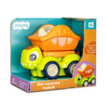 O Dino Caçamba Musical combina o universo dos dinossauros com a diversão dos veículos de construção em uma experiência cheia de estímulos.
