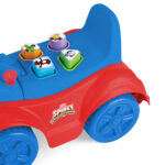 Além da função de apoio para deslocamento, acompanha formas geométricas que incentivam o aprendizado por meio do encaixe, desenvolvendo coordenação motora fina e percepção espacial. O boneco de vinil do Spidey amplia a experiência de faz de conta, tornando a brincadeira ainda mais envolvente.