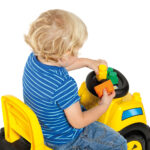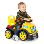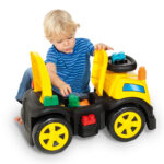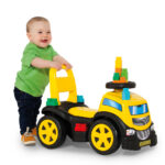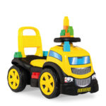 O Truck Ride On Amarelo é um brinquedo 2 em 1 que combina montaria infantil com blocos de montar, estimulando ao mesmo tempo coordenação motora grossa e criatividade. Enquanto a criança se movimenta com impulsão dos pés, também pode explorar a construção com os blocos, desenvolvendo habilidades cognitivas e motoras.